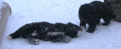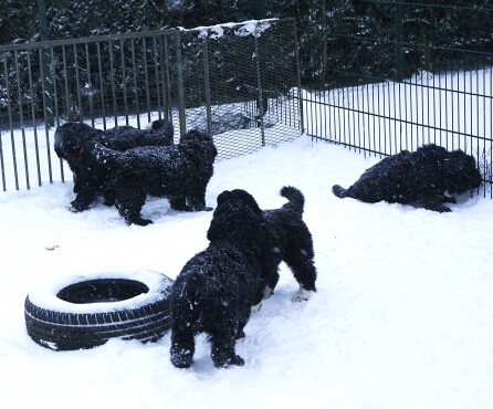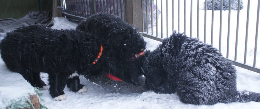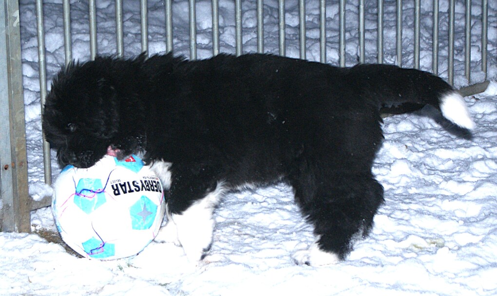 das Wackelbrett kam neu in den Auslauf dazu und wurde fleißig ausprobiert. Schnee gibt es zur Zeit bei uns im Überfluß, da macht das Toben richtig Spaß. Die Klapperdosen waren gewöhnungsbedürftig, doch