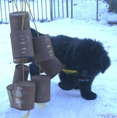 haben. Beim Tierarzt waren alle ganz tapfer und alle Welpen sind gesund! Die Gewichte liegen zwischen 8,8 KG und 9,8 KG. Die Klapperdosen kamen neu in den Auslauf dazu und werden ordentlich bespielt.