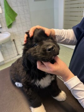 17.02.25 Die Welpen von Latoya und Mats sind am 15.02.25 geboren. Es sind 3 Rüden und 4 Hündinnen. Alle Welpen sind schwarz mit weißen Abzeichen. Die Gewichte liegen zwischen