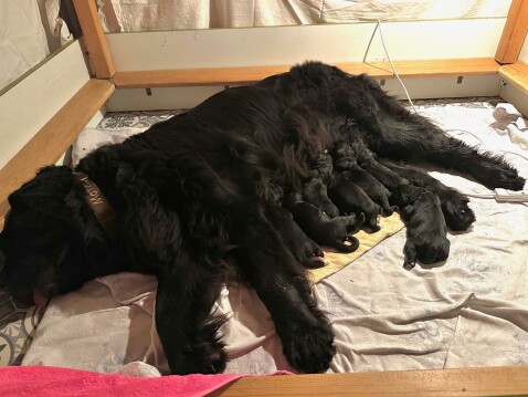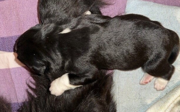 Die Welpen sind am 14.11.2025 geboren, es sind 3 Rüden und 4 Hündinnen. Zoe und den Welpen geht es prima. Die Welpen sind vorwiegend schwarz mit zum Teil weißen Abzeichen. Wöchentlich kommen neue Bilder von den Welpen auf die HP. | ![]() |